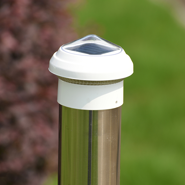 2211-CP1 WH Plastic Chain Link Fence Solar Post Cap Light เป็นผลิตภัณฑ์ส่องสว่างที่มีประสิทธิภาพและเป็นมิตรต่อสิ่งแวดล้อม ออกแบบมาสำหรับเสารั้ว Link Chain Link ขนาด 2.5 นิ้ว เหมาะสำหรับไฟตกแต่งและแสงสว่างเพื่อความปลอดภัยในพื้นที่กลางแจ้ง มีขนาด 85x85x70 มม. และทำจากวัสดุพลาสติกคุณภาพสูง ซึ่งมีความทนทานและทนต่อสภาพแวดล้อมกลางแจ้งที่รุนแรง เช่น ลม ฝน และรังสียูวี เสาไฟได้รับการออกแบบให้เข้ากันได้อย่างลงตัวกับเสารั้วมาตรฐานขนาด 2.5 นิ้ว ติดตั้งง่ายและรวดเร็วโดยไม่ต้องใช้เครื่องมือเพิ่มเติมหรือการทำงานที่ซับซ้อน และสามารถเพิ่มแหล่งกำเนิดแสงที่สว่างให้กับลานบ้าน สวน ถนนรถแล่น หรือบริเวณรั้วได้อย่างรวดเร็ว